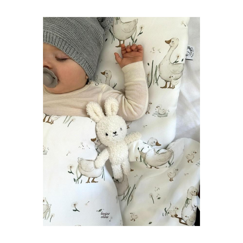 The inside of the quilt is filled with anti-allergic high-fluffy silicone fleece. The quilt is ideal from the first days of life, in a crib, for an afternoon nap, in a stroller, in a baby carrier, as a favourite quilt for any trip or as a soft mat for the baby.